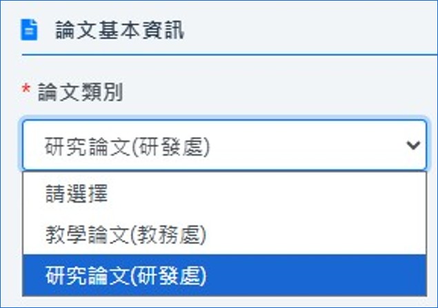分數認列,請勾選「研究論文(研發處)」,審核單位為